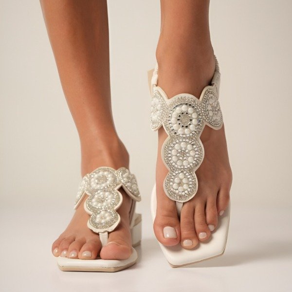 Sandalias chatitas importadas con piedras Blancas